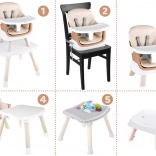 6‑en‑1 (chaise haute ; réhausseur pour chaise de repas ; chaise basse avec plateau ; chaise + table ; table avec plateau pour briques ; tabouret bas)