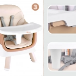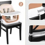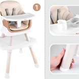 Chaise haute universelle 6‑en‑1 pour enfants à partir de 6 mois, qui grandit avec l’enfant et offre plusieurs modes d’utilisation. Grâce à sa construction modulaire, elle s’adapte facilement à la table à manger comme au coin jeux. Plateau amovible et lavable, harnais de sécurité 5 points, blocage anti‑glissement et embouts de pieds antidérapants garantissent sécurité et confort. Garnissage respirant, facile à nettoyer et adapté à un usage quotidien.