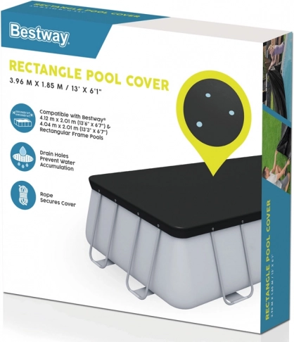 La couverture pour piscine Bestway est conçue pour être utilisée avec des piscines hors sol structurées et offre une protection efficace contre les insectes, les oiseaux, les feuilles et la pluie légère. Elle protège également les enfants d'une chute accidentelle dans la piscine.
