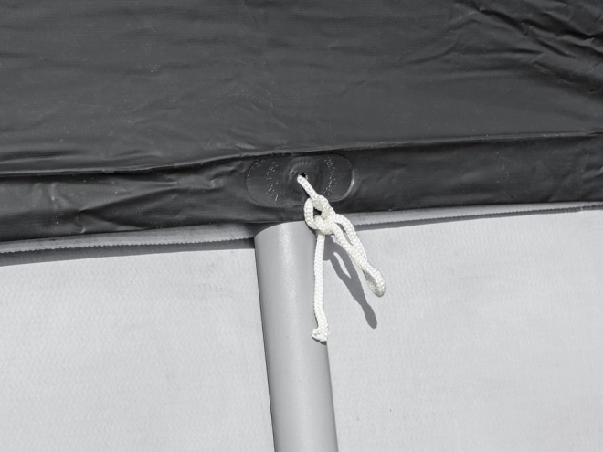 Se fixe rapidement avec des cordes et les trous permettent un drainage efficace de l'eau de pluie.