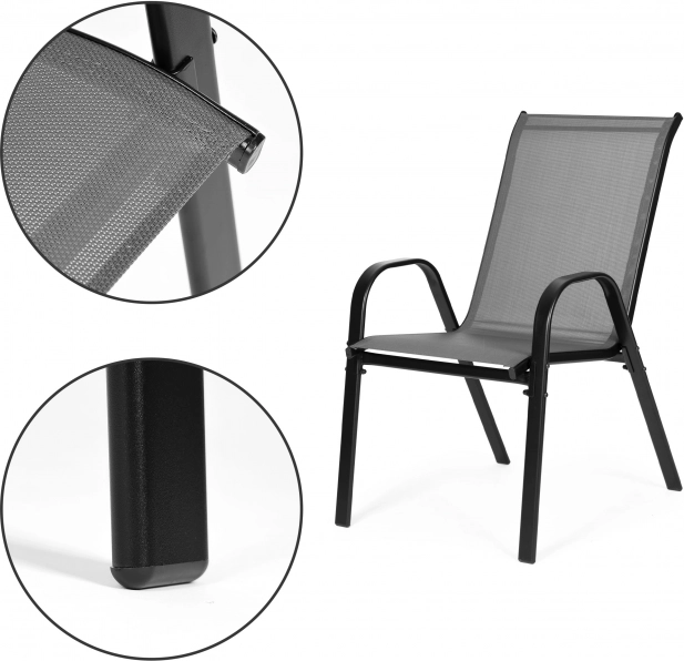 La toile qui constitue l'assise et le dossier est étanche et sèche rapidement, résistant ainsi facilement à la pluie et à la rosée matinale. Les embouts antidérapants protègent le sol des rayures et assurent la stabilité en position assise. Possibilité d'empilage permettant d'économiser de l'espace lors de l'entreposage lorsqu'elles ne sont pas utilisées.