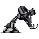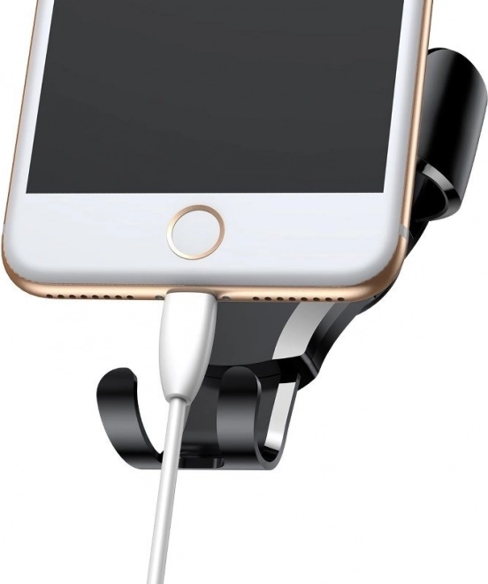 Le mécanisme gravitationnel assure une fixation instantanée – insérez le téléphone et les mâchoires latérales se resserrent automatiquement. La construction robuste en PC et éléments métalliques, avec coussinets en silicone, protège l’appareil contre les rayures et le maintient fermement même sur les irrégularités.