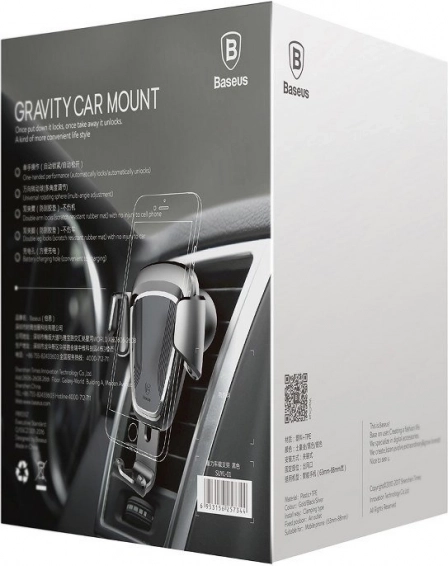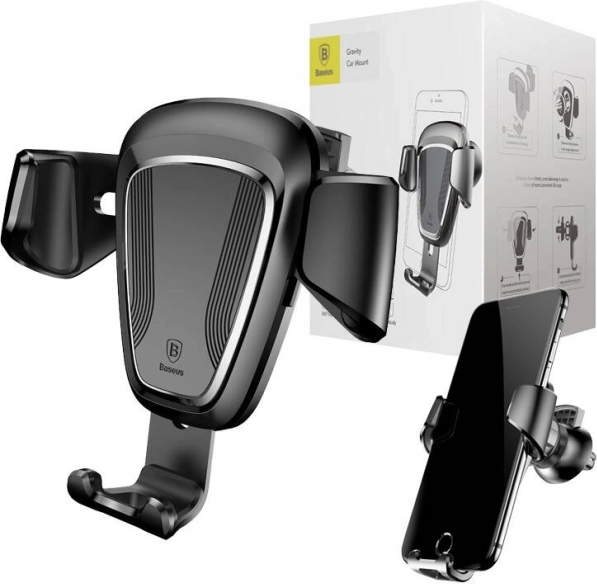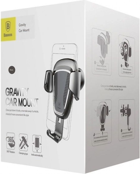 Profitez d’une utilisation sûre et claire du téléphone pendant la conduite. Le mécanisme gravitationnel du support BASEUS se referme automatiquement lors de l’insertion du téléphone et le fixe fermement, tandis que les coussinets souples protègent l’appareil contre les rayures. Sa construction compacte en élégante couleur noire s’installe facilement sur la plupart des grilles d’aération.