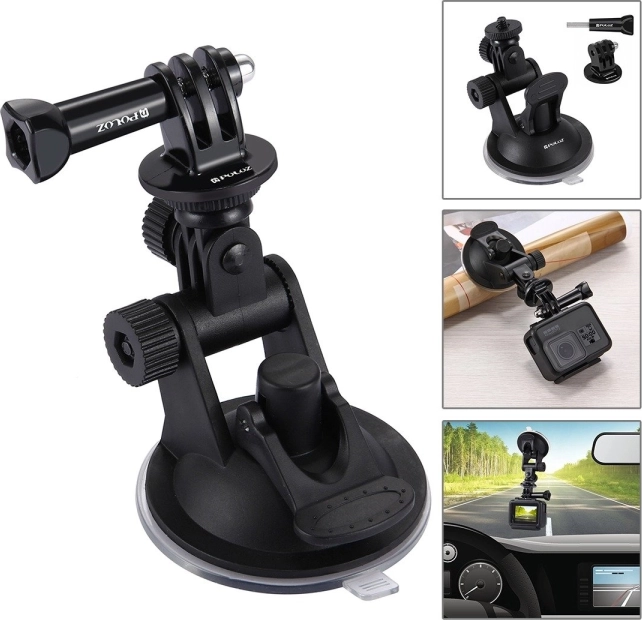 Une forte adhérence et des réglages multi-axes permettent une fixation sûre de la caméra sur la vitre ou le tableau de bord, ainsi qu’un réglage précis du cadrage.
