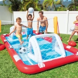 Le centre de jeu aquatique gonflable INTEX Action Sport transforme votre jardin en parc sportif amusant. Il inclut des activités de volley, de football et de baseball, permettant aux enfants d’alterner facilement et d’entraîner coordination et motricité. Grâce aux parois gonflables souples et à une structure stable, le jeu est sûr et confortable.