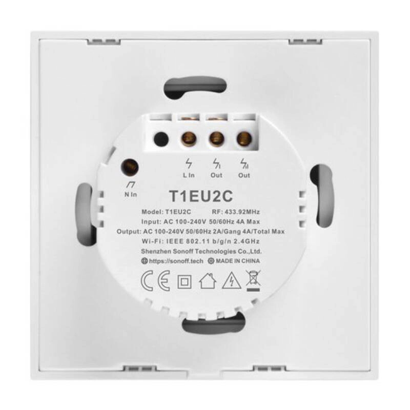 L’élégant interrupteur mural SONOFF T1 EU TX avec deux boutons tactiles apporte un contrôle intelligent de l’éclairage via Wi‑Fi et RF 433 MHz. Il permet le contrôle à distance via l’application eWeLink, le partage d’accès pour toute la famille et des plannings horaires automatiques. Sa finition de qualité en verre trempé et matériau PC V0 ignifugé s’accorde parfaitement aux intérieurs modernes.