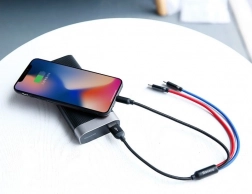 USB‑C, Lightning et Micro USB dans un seul câble – chargez téléphone, écouteurs et autres accessoires sans chercher le bon cordon.