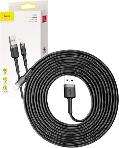 Le câble prolongé BASEUS Cafule USB–Lightning de 3 mètres vous offre une grande liberté pour charger et utiliser votre téléphone sur le canapé, au bureau ou au lit. Grâce à sa fabrication de qualité avec gaine en nylon et embouts en aluminium renforcés, le câble est exceptionnellement résistant à la flexion et à l’usure.