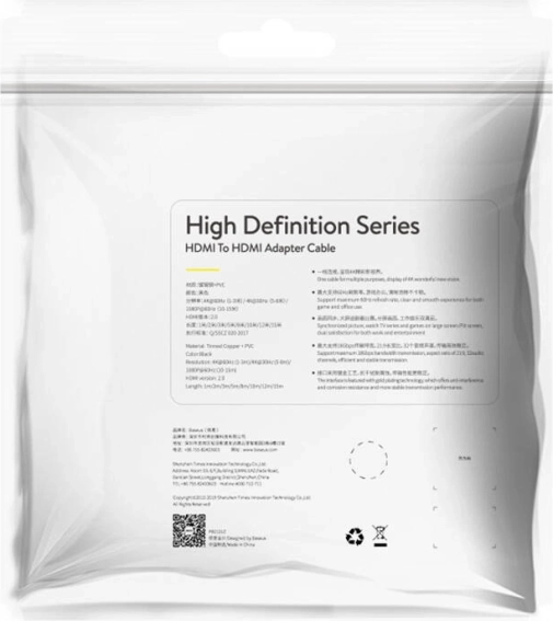 Profitez d’une image nette et d’un son clair grâce au câble BASEUS HDMI 2.0. Idéal pour connecter TV, moniteurs, projecteurs, consoles de jeux et autres appareils. La prise en charge du 4K@60 Hz et du HDR garantit des couleurs vives, une plage dynamique accrue et plus de détails.