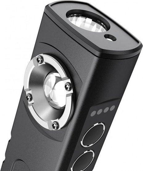 Cette lampe est équipée d'un laser rouge, ce qui la rend idéale comme pointeur lors de conférences ou de présentations. La batterie peut être facilement rechargée à l'aide d'un câble USB et l'appareil peut également servir de batterie externe/powerbank pour recharger les téléphones mobiles.