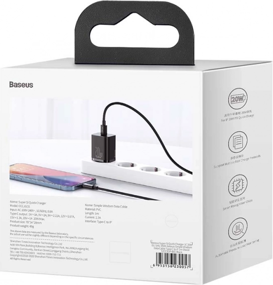 La technologie Super Si a réduit la taille du chargeur, ce qui facilite son transport sans compromettre ses performances ni sa sécurité. Le chargeur Baseus ajuste automatiquement le courant pour une charge optimale et dispose de protections contre la surcharge, le court‑circuit et la surchauffe. Le coffret inclut un câble USB‑C vers Lightning de qualité, résistant à l’usure pour des performances fiables.