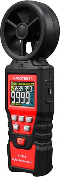 Le HABOTEST HT625B est un anémomètre fiable doté d’un rotor à huit pales et d’un capteur à roulements sensible pour des mesures stables et rapides. L’écran couleur haute résolution affiche jusqu’à 9999 counts, avec indication de la batterie. Vous pouvez choisir parmi plusieurs unités de vitesse (m/s, km/h, mph, ft/s, nœuds) et de débit d’air (CFM/CMM/CMS), ce qui vous permet d’adapter facilement l’appareil à vos habitudes de travail.