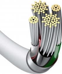 Le câble est fabriqué avec des matériaux durables (ABS + TPE) et des conducteurs en cuivre étamé renforcés. La zone renforcée près des connecteurs augmente la longévité lors des flexions répétées. Une dragonne est incluse pour un rangement facile sans emmêlement.