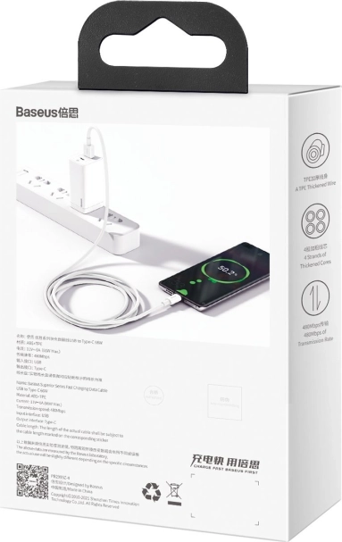 Le câble Baseus Superior USB vers USB‑C réduit le temps de charge et accélère la copie de fichiers. Avec une puissance allant jusqu’à 66 W, il recharge très rapidement les téléphones compatibles, tandis que la vitesse de transfert de 480 Mb/s permet des sauvegardes rapides de photos, vidéos et documents.