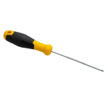 La poignée ergonomique en plastique de couleur jaune tient parfaitement en main et réduit la fatigue lors des travaux prolongés. Un trou pratique dans la poignée permet de le suspendre au panneau mural pour un rangement ordonné des outils.