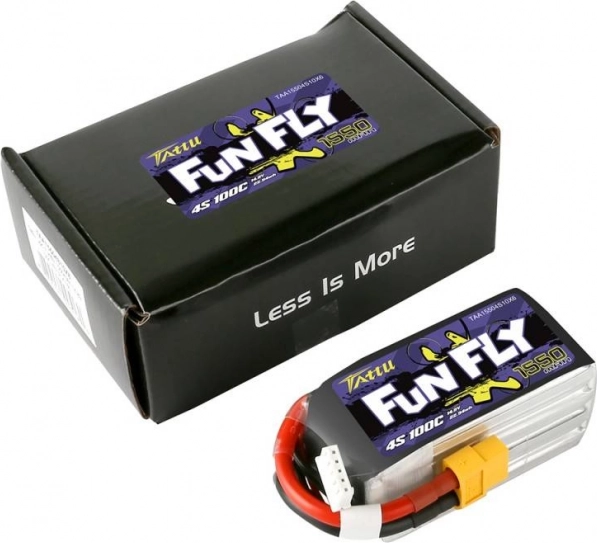 La Tattu Fun Fly 1550 mAh 4S est un choix apprécié pour les courses FPV comme pour le freestyle. Grâce à son 100C, elle délivre une puissance vigoureuse et un courant rapide sans chute de tension marquée, offrant des réponses moteur vives et une performance régulière plus longtemps.
