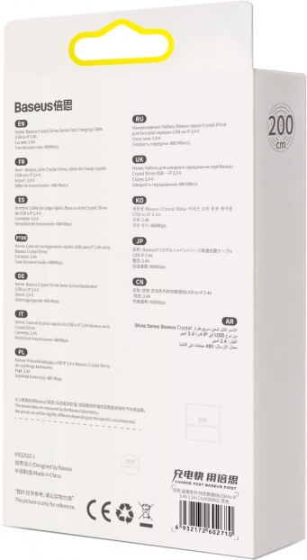 Câble Baseus USB vers Lightning d’une longueur de 2 m, assure une charge rapide et sûre grâce à une intensité de 2,4 A. Avec sa gaine tressée résistante et son design élégant, il est idéal pour une utilisation quotidienne.