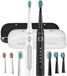 Un sourire éclatant chaque jour avec le lot de 2 brosses à dents soniques FAIRYWILL approuvées par l’ADA. Jusqu’à 40 000 vibrations/min, 5 modes, minuteur intelligent de 2 min avec intervalles de 30 s et étanchéité IPX7. Grâce à une autonomie allant jusqu’à 30 jours par charge, à un jeu de 8 têtes et à 2 étuis de voyage, c’est le choix idéal pour les couples et les familles.