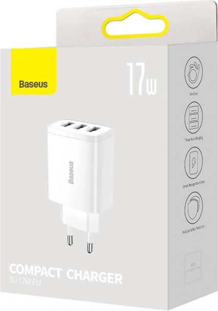 Vous cherchez un chargeur universel pour téléphone, écouteurs et autres appareils électroniques ? Cet adaptateur compact BASEUS combine une puissance de 17 W avec une sortie USB triple, pour recharger confortablement jusqu’à trois appareils en même temps. La puce intégrée détecte automatiquement l’appareil connecté et sélectionne le courant optimal pour un rechargement rapide et doux.