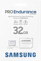 Résistance et fiabilité maximales avec la carte microSD Samsung Pro Endurance. Idéale pour l’enregistrement continu dans les caméras sportives et de surveillance, grâce à sa capacité de 32 Go et à ses vitesses élevées de lecture et d’écriture.