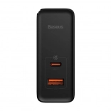 Grâce aux deux ports USB-A et USB-C, le chargeur Baseus GaN permet de charger simultanément deux appareils avec une puissance allant jusqu’à 65 W et 30 W.