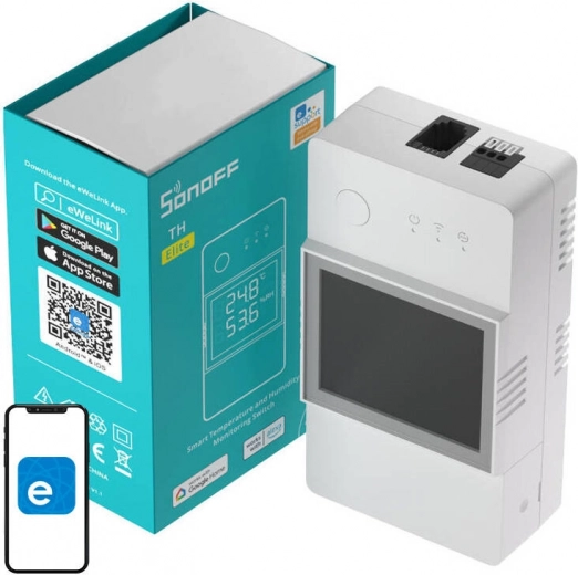 Interrupteur intelligent universel avec capacité de 20 A, idéal pour le chauffage par le sol, les pompes, l’arrosage, les serres, les piscines intérieures, les caves à vin et les terrariums. Il suit en temps réel la température et l’humidité et commute les équipements connectés lorsque les valeurs définies sont atteintes. Grâce à l’application eWeLink, vous gardez tout sous contrôle où que vous soyez, y compris en mode LAN sans Internet.