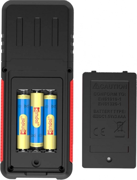 Construction robuste : L'appareil est fabriqué en plastique ABS, ce qui lui confère une résistance aux chutes, à la poussière et à l'eau. Un design ergonomique assure une utilisation confortable et un couvercle spécial protège les pointes de mesure contre les dommages.