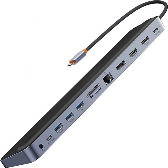 Étendez votre ordinateur portable avec jusqu’à 12 ports grâce au hub BASEUS EliteJoy Gen2 12‑en‑1. Vous obtenez 2× HDMI jusqu’à 4K, DisplayPort 4K/60 Hz, 3× USB 3.0 (500 Mo/s), USB‑C données, charge PD 100 W, RJ45 gigabit, lecteur SD/TF et audio 3,5 mm. Le corps en alliage d’aluminium avec silicone sert aussi de support incliné à 8° pour une frappe plus confortable et une meilleure ergonomie.