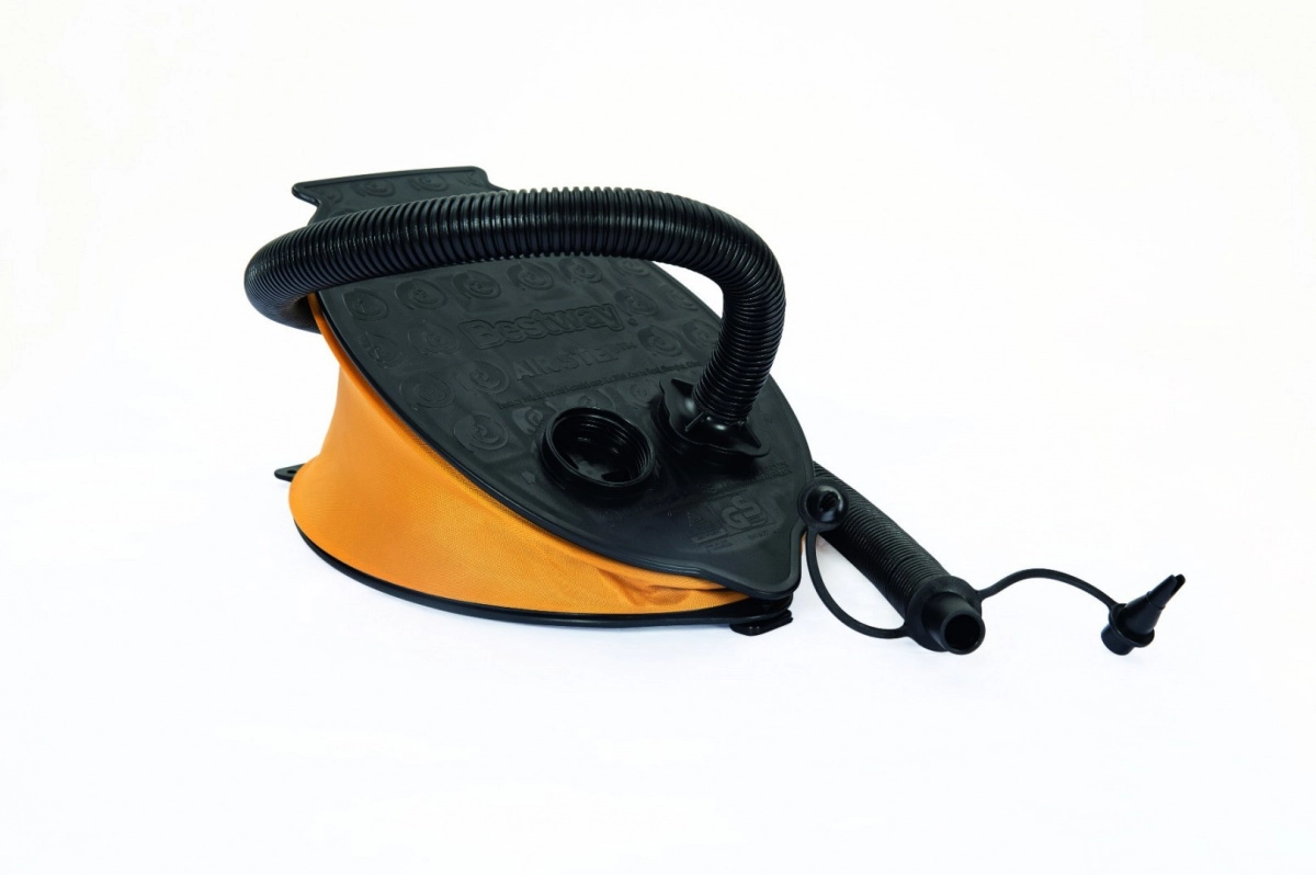 Cette pompe à pied légère et puissante de la marque Bestway est non seulement performante, mais aussi facile à utiliser. Son design noir et jaune avec tuyau flexible et trois embouts interchangeables assure une manipulation confortable et un gonflage efficace de vos jouets gonflables ou matelas.