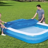 Bâche de protection Bestway résistante pour piscines gonflables rectangulaires de dimensions 262 × 175 × 50,5 cm, protège efficacement l’eau contre les insectes, les feuilles, les oiseaux et les faibles pluies. Grâce aux orifices d’évacuation, l’eau excédentaire ne stagne pas à la surface, les cordons de fixation empêchent l’arrachement par le vent, et la bâche offre en outre une isolation thermique et une sécurité accrue pour les enfants.