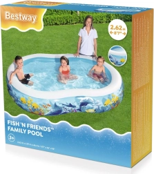 La piscine gonflable BESTWAY Fish 'n Friends transformera votre jardin en un royaume sous-marin coloré. La forme ovale offre suffisamment d’espace pour jouer et barboter, tandis que les larges parois latérales garantissent confort et stabilité. Le PVC/vinyle de qualité résiste bien à l’usage régulier pendant les chaudes journées d’été.