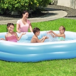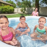 La piscine gonflable BESTWAY est un excellent choix pour le jardin comme pour la cour. Le matériau en vinyle robuste garantit une longue durée de vie et une résistance aux dommages mécaniques comme aux UV. Deux anneaux gonflés séparément forment des parois solides et confortables, qui assurent la stabilité pour les jeux des enfants comme la détente des adultes.