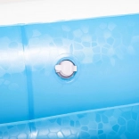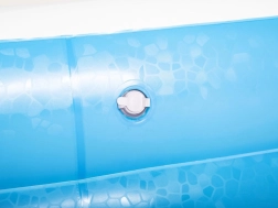 Le PVC résistant (épaisseur 0,27 mm) supporte les jeux quotidiens des enfants, tandis que la valve de sécurité empêche les fuites d’air involontaires. Après la baignade, vous évacuerez l’eau facilement via la valve de vidange inférieure, puis vous plierez et rangerez la piscine en un rien de temps. Un rustine de réparation est également incluse en cas de petite détérioration.