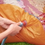 Le toboggan gonflable souple et la douchette volcan transforment chaque journée en aventure rafraîchissante. Il suffit de raccorder un tuyau d’arrosage et la fête peut commencer.