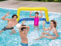 Des dimensions d’environ 137 × 66 cm le rendent idéal pour les piscines domestiques. Le set inclut également un ballon, pour jouer immédiatement au water-polo, au tir au but ou à des compétitions familiales. Une excellente manière de faire bouger enfants et adultes et de profiter d’une animation estivale active dans la piscine.