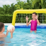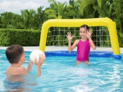 Le but gonflable BESTWAY apporte une dose de divertissement sportif à chaque piscine. Sa conception légère et sûre en vinyle de qualité assure une longue durabilité, tandis que le filet en nylon capte chaque tir avec fiabilité. Grâce aux valves de sécurité, le but est prêt à jouer en un rien de temps et se range tout aussi rapidement.