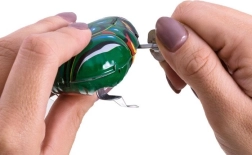 Cette jolie petite grenouille-jouet est faite de métal dans une belle couleur verte et est alimentée par un mécanisme à ressort qui se remonte avec une clé. La grenouille fait sourire toutes les générations. Grâce à ses petites dimensions, elle tient facilement dans la main d'un enfant et est parfaite pour des moments amusants, par exemple cachée dans un sac à main. Assurez-vous de l'avoir comme talisman pour la chance !
