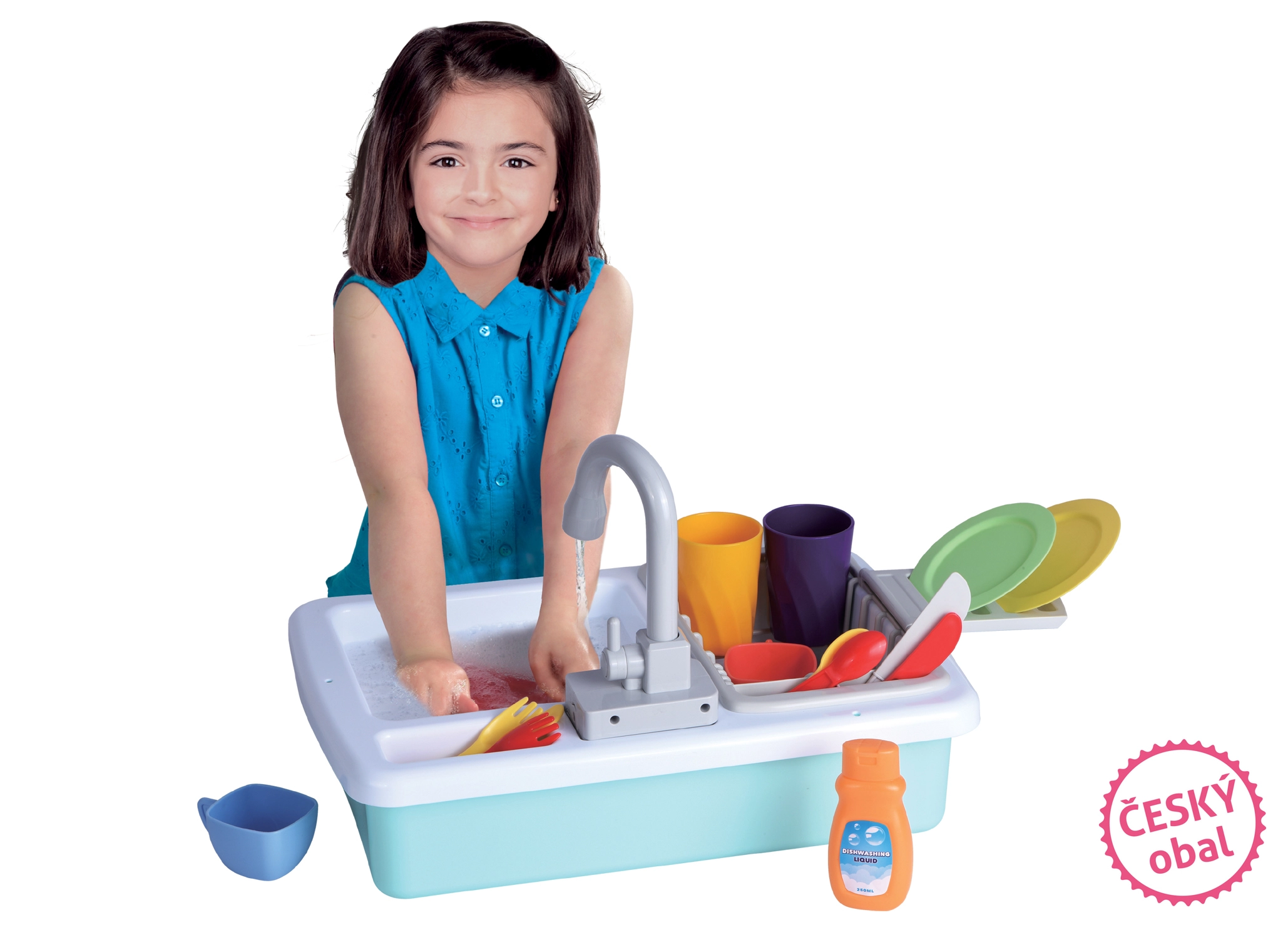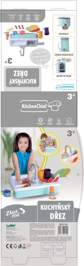 Le paquet comprend un équipement de cuisine pratique pour commencer immédiatement : tasses, assiettes, gobelets, couverts, ainsi qu’un liquide vaisselle pour un jeu encore plus réaliste. L’évier est un excellent complément à toute cuisine pour enfants et divertira pendant de longues heures.