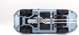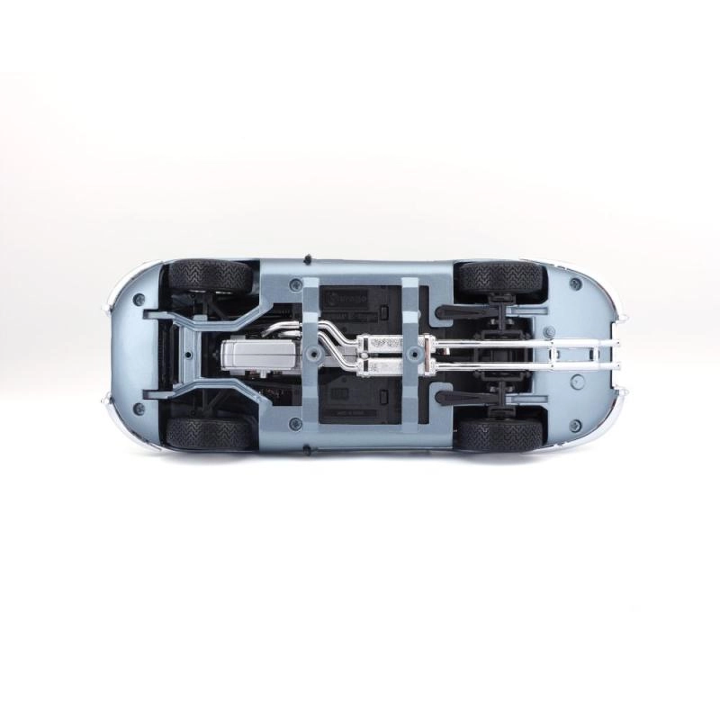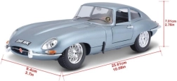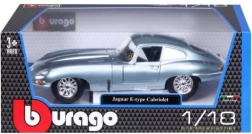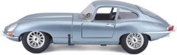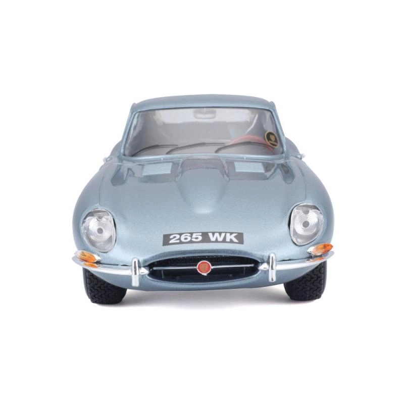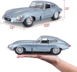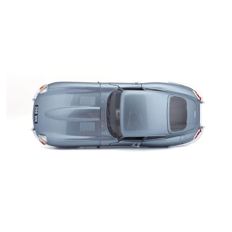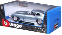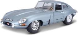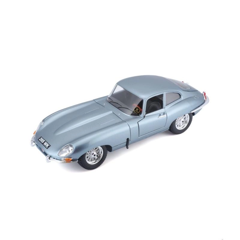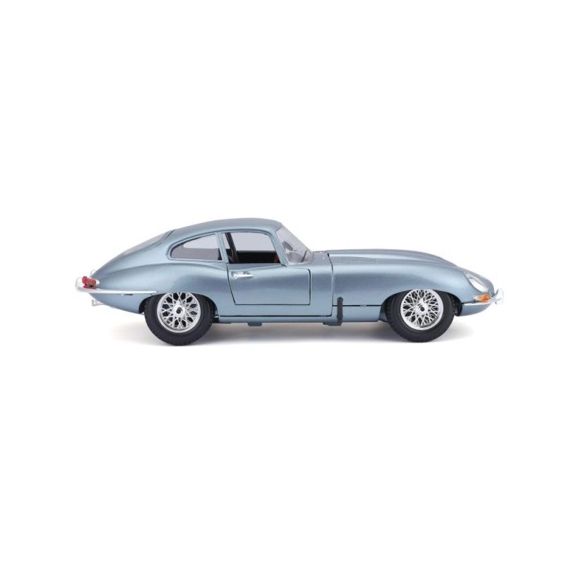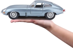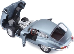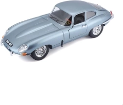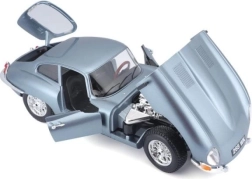 Modèle réduit métallique 1:18 Bburago 18-12044 Jaguar E-type Coupé, pas seulement pour les collectionneurs. Il possède des portes et un capot ouvrants, et la direction des roues via le volant est pleinement fonctionnelle. La couleur du modèle est bleu argent métallisé.