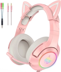 Le casque de jeu propose un design unique avec des oreilles de chat qui attire l'attention. Outre l'apparence, il est équipé de haut-parleurs de pointe pour un son clair et de coussins respirants assurant un confort tout au long de la journée. Pour un ajustement encore meilleur, vous disposez d'un panneau sur le câble pour le contrôle du volume et du microphone.