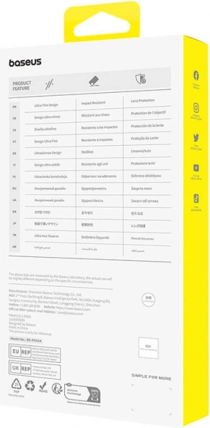 Grâce à la technologie Baseus AirCare, les coins sont renforcés pour une meilleure absorption des chocs. Des bords surélevés de 1 mm autour de l’écran et de 0,6 mm autour de l’appareil photo protègent les parties sensibles du téléphone. La surface antidérapante et anti-traces maintient l’appareil propre et sécurisé en main. Le cadre en TPU souple permet une installation et un retrait faciles.