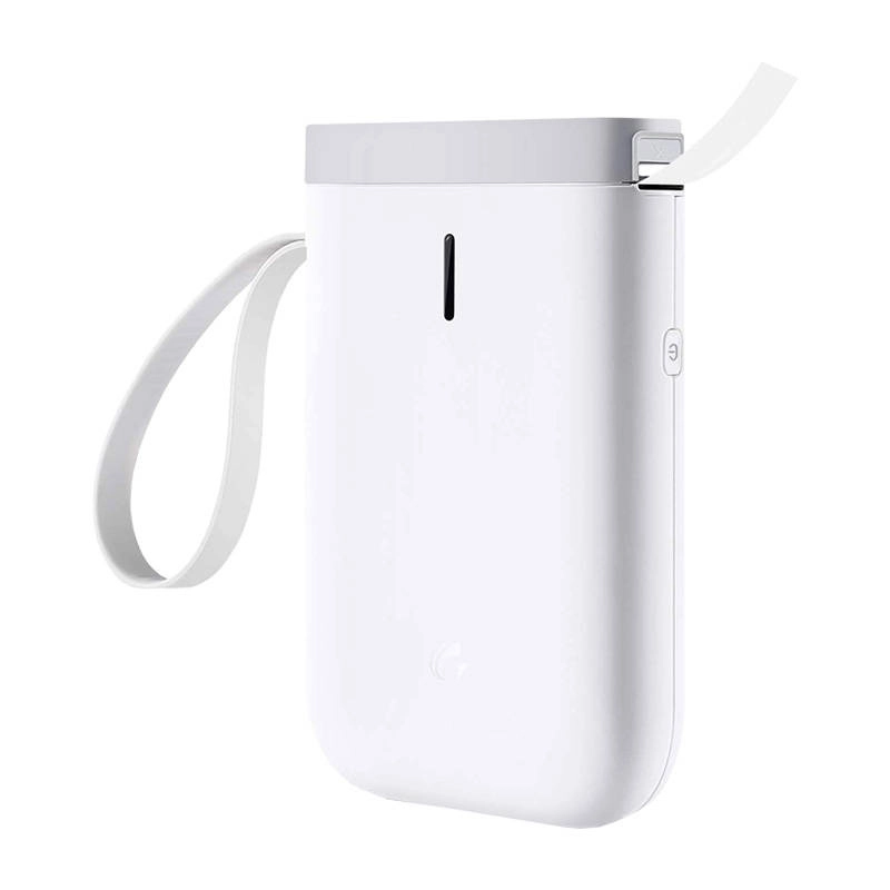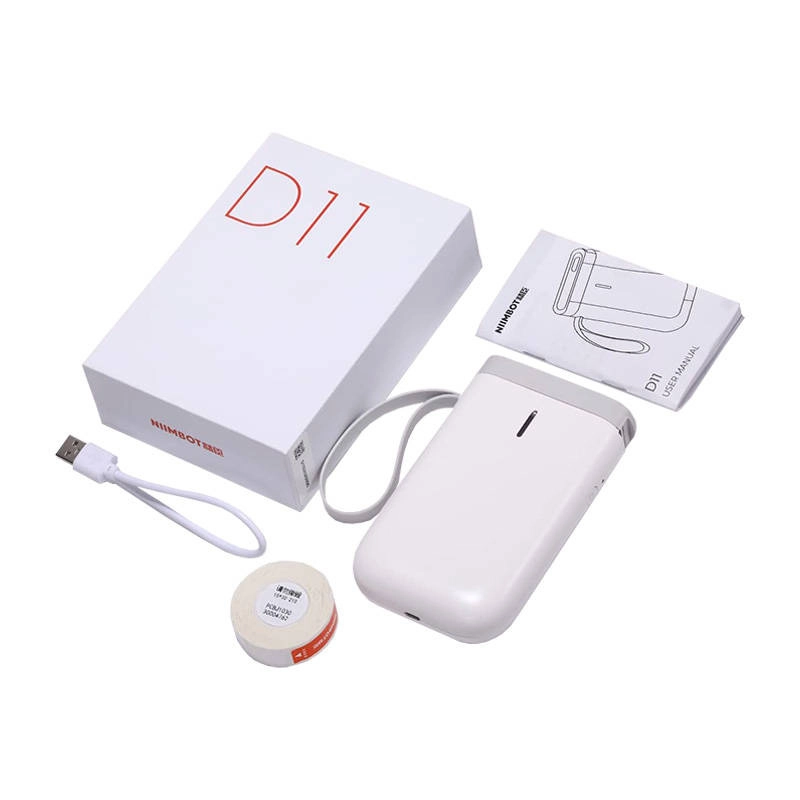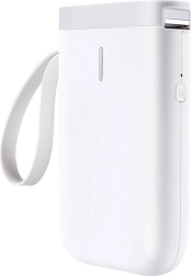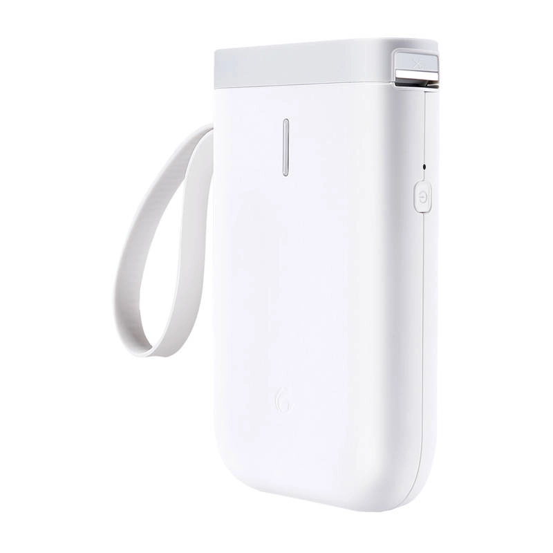 L’appareil se connecte en Bluetooth aux téléphones Android et iOS. Le boîtier compact (132 × 79 × 29 mm, 182 g) avec dragonne pratique est idéal en déplacement comme au bureau. La batterie intégrée de 1500 mAh assure un fonctionnement confortable, la recharge s’effectue via micro USB. Le coffret comprend un rouleau de démarrage (jusqu’à 160 étiquettes), vous pouvez donc commencer à imprimer immédiatement.