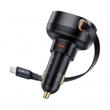 Le chargeur de voiture Baseus Enjoyment Pro est conçu pour une utilisation facile et une grande efficacité. Grâce à son câble rétractable de 70 cm, vous pouvez connecter des appareils avec connecteurs Lightning et USB‑C. Avec le port USB‑A supplémentaire, vous pouvez charger jusqu’à trois appareils en même temps, ce qui réduit le temps de charge et vous fait gagner du temps.