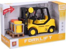 Le chariot élévateur jaune et noir est un complément parfait à toute collection de jouets pour enfants. Ce modèle est destiné aux conducteurs habiles qui apprécieront sa partie avant mobile adaptée au levage de palettes.