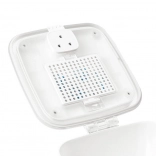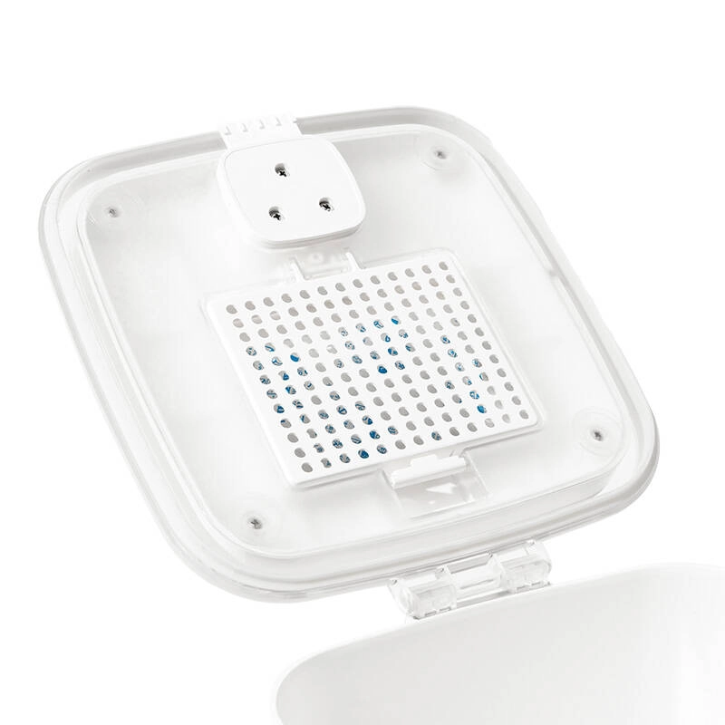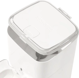 Un système d’étanchéité abouti, la fermeture automatique de la trémie et le réservoir avec dessiccant maintiennent les croquettes fraîches et croustillantes, tandis que la conception évite les blocages (croquettes jusqu’à 16 mm). La gamelle à inclinaison ergonomique de 7° est confortable pour manger et toutes les pièces sont faciles à nettoyer. L’alimentation se fait via un adaptateur ou 4× piles AA pour plus de sérénité en cas de coupure de courant.
