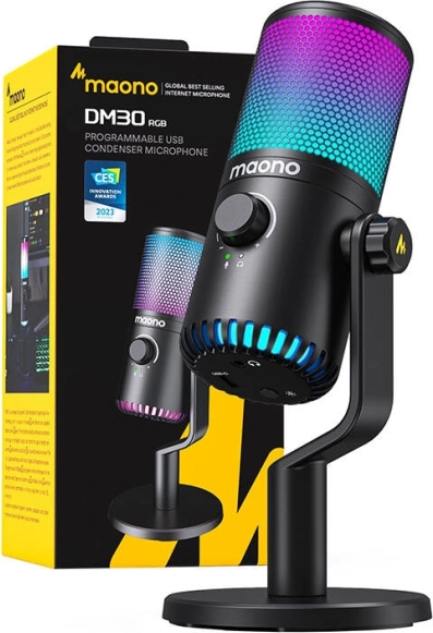 Optimisez vos streams et vos appels avec le Maono DM30RGB. La capture cardioïde met l’accent sur votre voix, tandis que les commandes intégrées permettent de couper en un éclair, d’ajuster la sensibilité et le volume du casque. L’éclairage RVB avec 7 couleurs et 5 gradients donne à votre setup un style percutant.