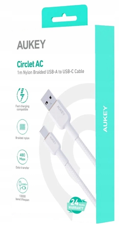 Le câble universel AUKEY USB‑C – USB‑A de 1 m offre une charge rapide jusqu’à 60 W (3 A, 20 V) et un transfert de données stable. Grâce à sa gaine en nylon résistante, il ne se tord ni ne s’emmêle et convient parfaitement à un usage quotidien à la maison, au bureau et en déplacement.