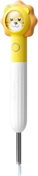 Le coffret comprend des embouts métalliques et en silicone délicats ainsi que des coton‑tiges souples qui ne rayent pas et n’irritent pas. La batterie intégrée de 30 mAh offre jusqu’à 45 minutes d’utilisation et se recharge via USB (DC 5 V / 0,5 A). Sa conception légère de 25 g, le gyroscope à 3 axes pour la stabilisation et le Wi‑Fi IEEE 802.11 b/g à 2,4 GHz assurent une utilisation confortable à la maison comme en déplacement. Les enfants apprécieront le motif ludique de lion sur la poignée.