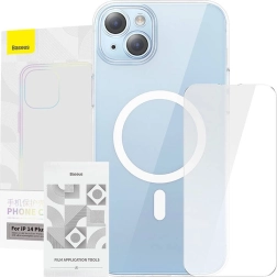 Coque magnétique Baseus ultrafine et parfaitement transparente pour iPhone 14 Plus avec verre trempé, protégeant le téléphone sans compromis sur le style. Le matériau premium Bayer ne jaunit pas, les bords surélevés protègent les lentilles de l’appareil photo et les découpes précises assurent une utilisation confortable. La coque prend en charge la charge sans fil et résiste aux chocs ainsi qu’à la poussière.