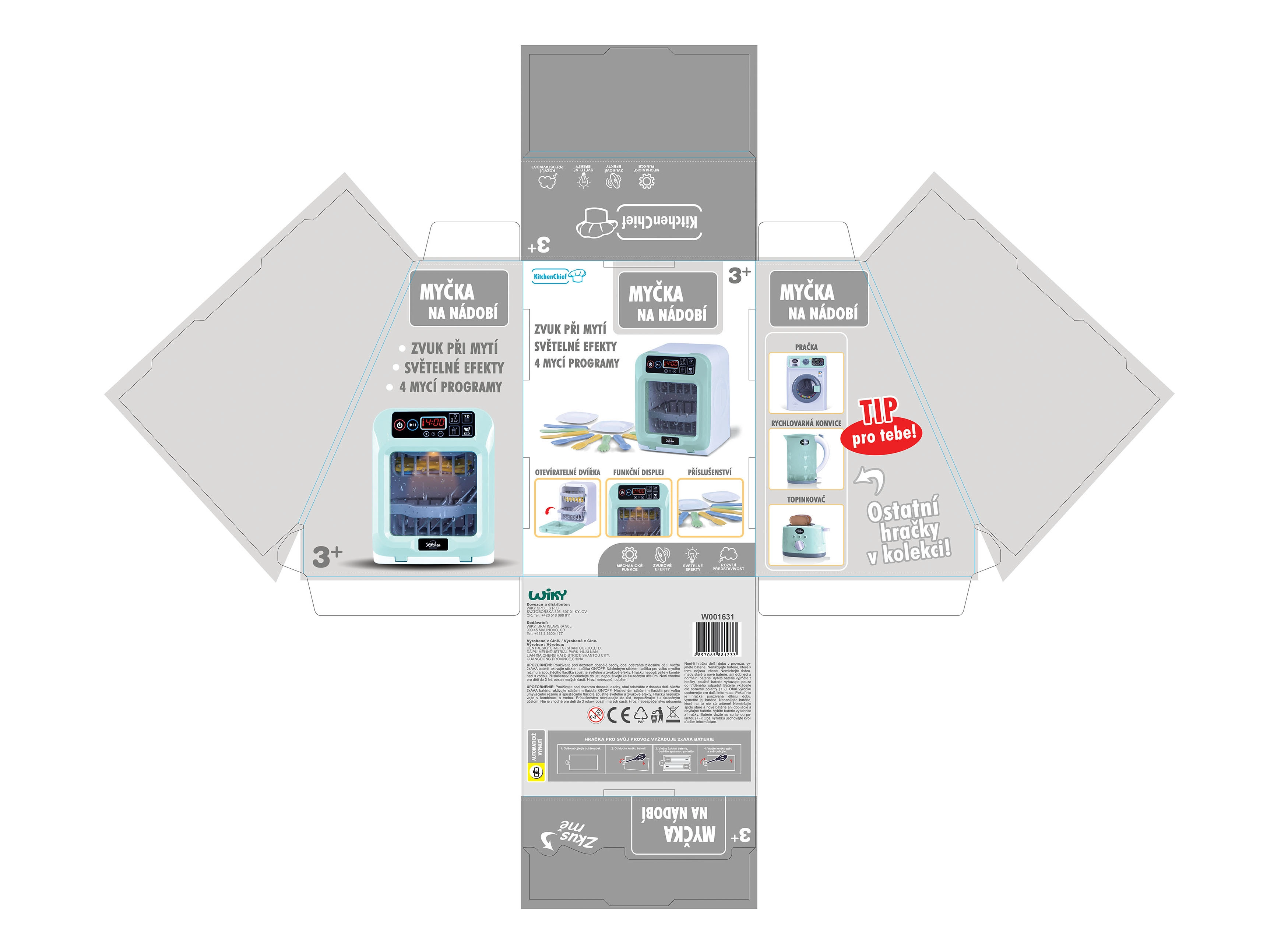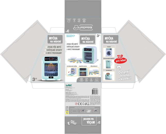 Choisis parmi 4 programmes de lavage ou règle ton propre temps selon les besoins. Le lave-vaisselle est prêt à l’emploi dès le déballage – 2× piles AAA sont incluses. Un cadeau parfait, à la fois ludique et éducatif, pour apprendre l’ordre dans la petite cuisine.